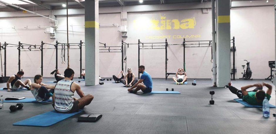 Antrenorul explicand miscari de stretching la sfarsitul unui antrenament de CrossFit la Uzina CrossFit Columna